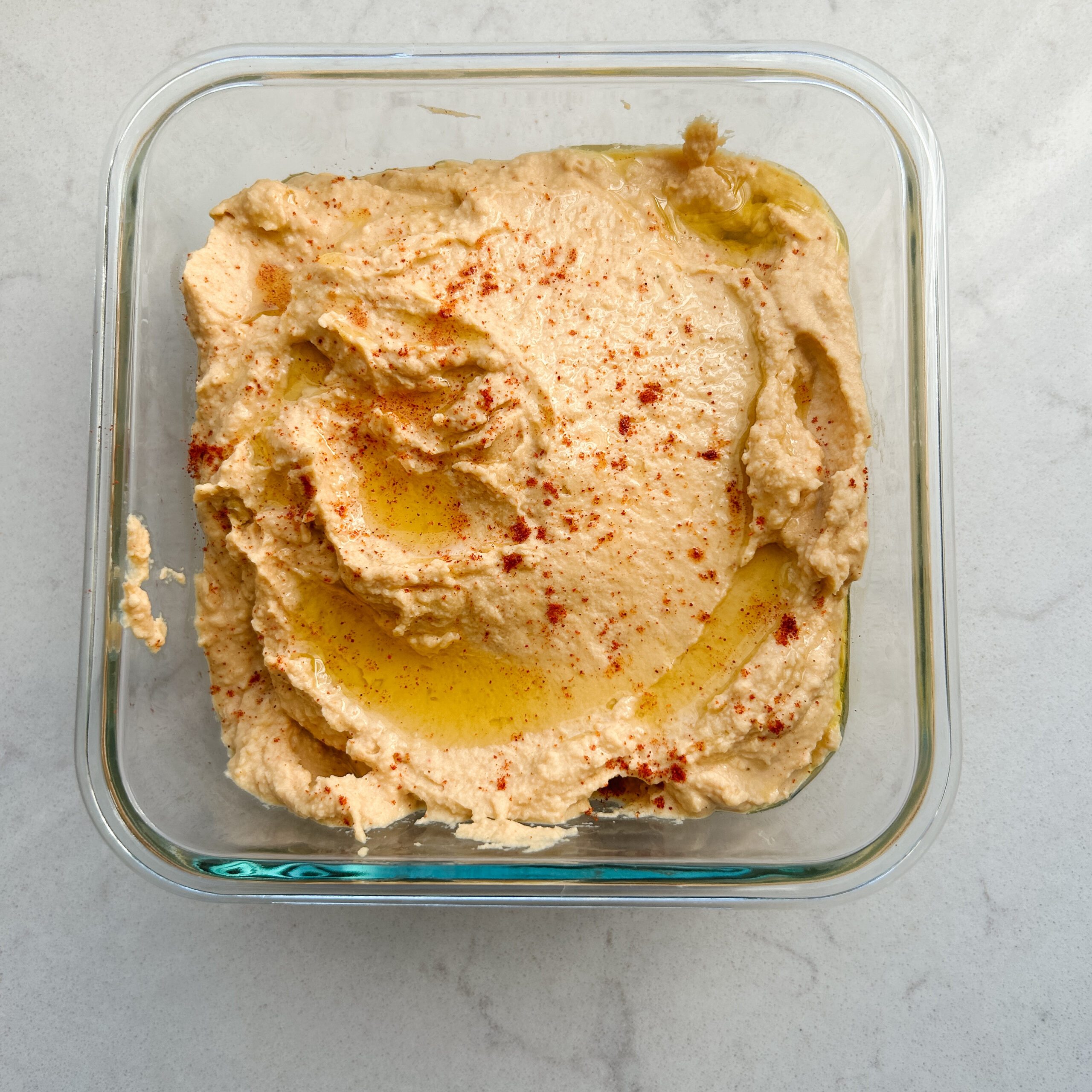 - Store in a container in the fridge for 5-7 days. If the hummus dries up you can add a drizzle of olive oil before serving. Enjoy with your favourite vegetables, or crackers.